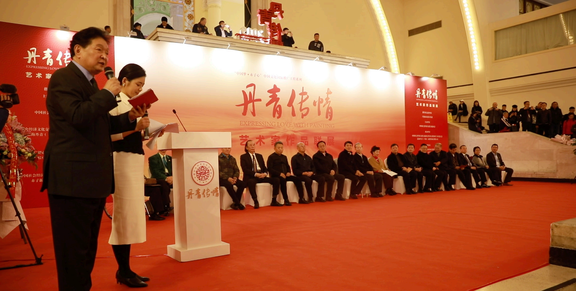 第80页-1.PNG2019 11 27 日下午,“丹青传情”艺术家作 品联展在上海展览中心正式开幕。中央宣传部原常务副 部长龚心瀚,中国作家协会原党组书记、副主席金炳华, 文化和旅游部艺术司司长诸迪,上海市委宣传部副部长 胡劲军,中国人民解放军国防大学原政委童世平,中国 文联副主席、中国音乐家协会主席叶小纲,著名舞蹈表 演艺术家、中国社会经济文化交流协会名誉会长赵青, 艺术家王铁成、陈铎、卢奇、吴欢等嘉宾以及社会各界 人士出席开幕式,由著名艺术家瞿弦和,著名主持人陈 辰共同主持。